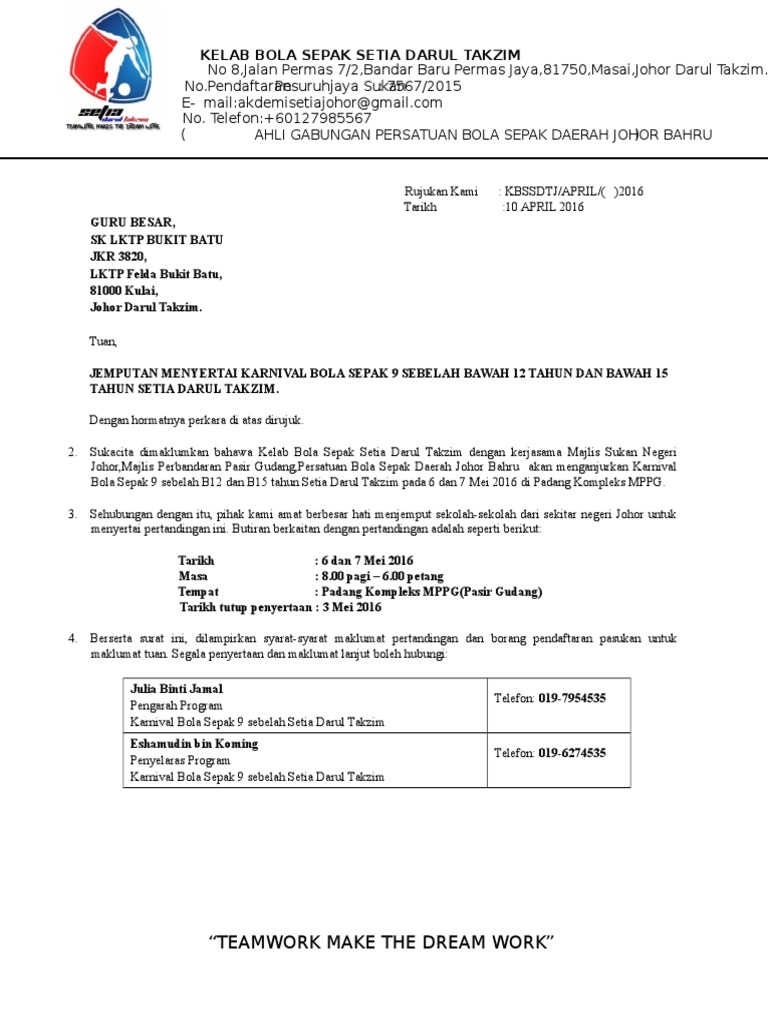 Surat Jemputan Karnival Bola Sepak 9 Seblah Sdt 1 Sk Bukit Batu Pdf